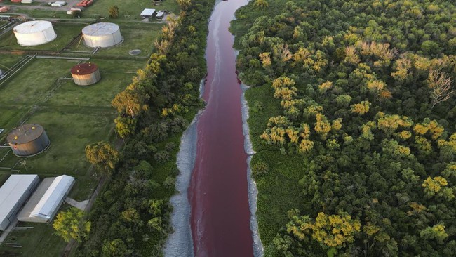Mengutip BBC, Senin (10/2/2025), foto dan video menunjukkan air yang sangat berwarna tersebut mengalir ke sebuah muara, Rio de la Plata, yang berbatasan dengan cagar alam.