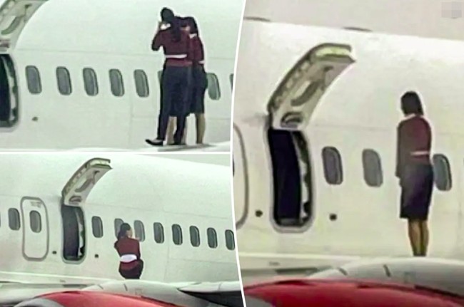 Sebuah maskapai penerbangan memulai penyelidikan terhadap tiga pramugarinya yang berada di sayap pesawat. Mereka ketahuan lagi foto-foto.