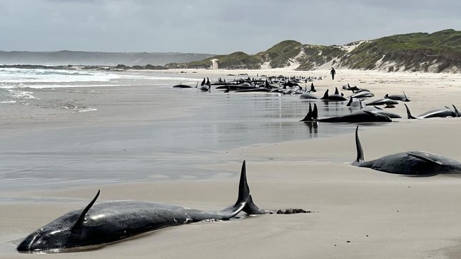 Diberitakan news.co.au, Kamis (20/2/2025) sebanyak 157 ekor paus pembunuh palsu, salah satu spesies lumba-lumba samudera, terdampar sejak Rabu pagi. Petugas penghubung Dinas Taman dan Satwa Liar Tasmania (PWS) Brendon Clark mengatakan paus-paus itu telah berada di pantai antara 24- 48 jam.