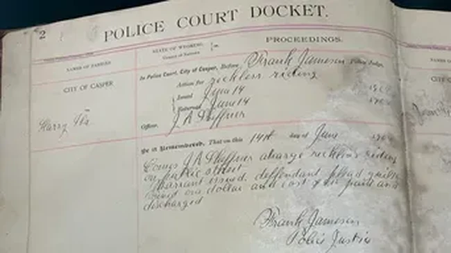 Dikutip dari Fox News, Kamis (27/2/2025) setelah membuka buku tersebut, mereka terkejut karena ternyata itu adalah dokumen polisi dari tahun 1904. Berkas tersebut berisi catatan berbagai kejahatan yang terjadi di Casper, termasuk denda-denda yang dikenakan setelah biaya pengadilan.