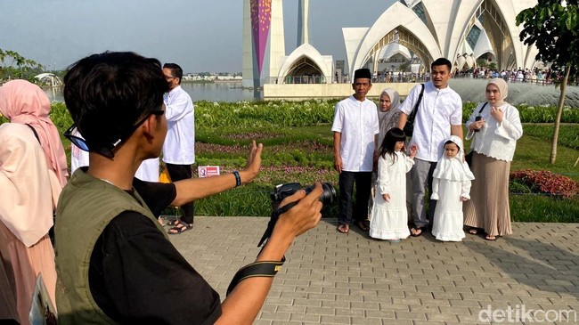 Lebaran di Masjid Al Jabbar bukan hanya tentang ibadah, tapi juga tentang mengabadikan momen bahagia bersama keluarga. Warga antusias berfoto dengan latar belakang masjid megah ini, membuat para juru foto dadakan panen rezeki.