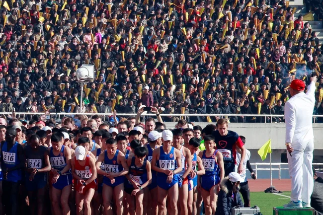 "Maraton ini merupakan lari pulang pergi melalui pusat Kota Pyongyang, melewati landmark Pyongyang, menuju pedesaan di luar pusat kota, dan kembali ke stadion dengan kerumunan 50.000 warga setempat," demikian menurut Koryo Tours.