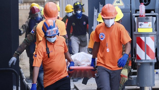 Lebih dari 300 petugas penyelamat, dibantu anjing pelacak, telah menghabiskan dua hari menyisir tumpukan batu bata, batang baja, dan lembaran timah yang runtuh, dengan bantuan petugas pemadam kebakaran dari Puerto Riko dan Israel.