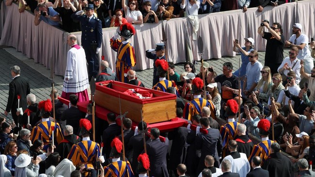 Penghormatan terakhir kepada Paus Fransiskus akan berlangsung hingga Jumat malam. Setelah itu pada Sabtu Paus Fransiskus, yang wafat pada usia 88 tahun, dimakamkan.