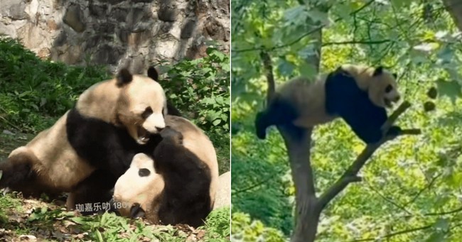 Itu sebelum akhirnya pertengkaran meningkat menjadi pertengkaran fisik dengan kedua panda tersebut saling menggigit dan menjepit satu sama lain.