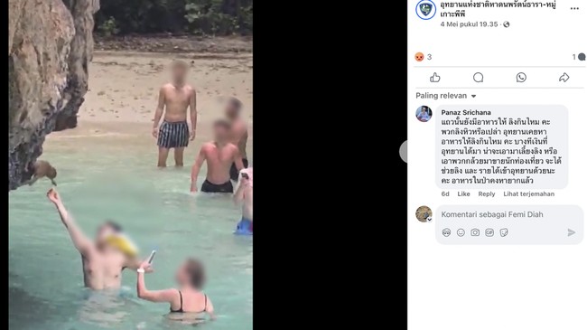 Dikutip dari nationthailand, Selasa (13/5/2025), video itu viral sepekan terakhir. Dalam video tersebut tampak seorang pria bule berdiri di air setinggi pinggang sambil menyuapkan keripik kentang ke monyet liar di salah satu pantai di Ao Ling Sam Hat yang masuk kawasan Taman Nasional Mu Ko Phi Phi.
