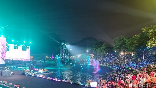 Air mancur menari jadi salah satu atraksi dalam tiap penampilan panggung. Mulai dari teatrikal musik, Juicy Luicy, JKT 48, sampai Diskoria ft Andien, mewah dengan air mancur menari.