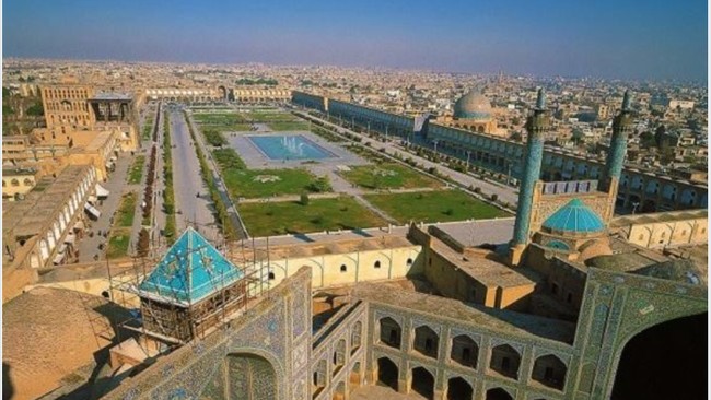 Lapangan yang dikenal juga dengan nama Lapangan Shah atau Lapangan Imam ini berdiri pada 1598-1629. Dengan luas kurang lebih 9 hektar, panjang 512 meter, dan lebar 160 meter, Naqsh-e Jahan Square menjadi terbesar kedua di dunia setelah Tiananmen di Cina.