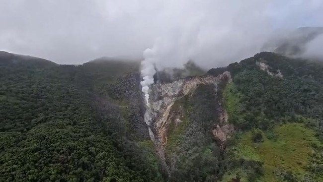 Dalam video berdurasi 34 detik itu terlihat gambar kawah yang diambil dari ketinggian dengan menggunakan drone. Dari kawah tersebut keluar asap putih tebal yang membumbung tinggi ke udara.