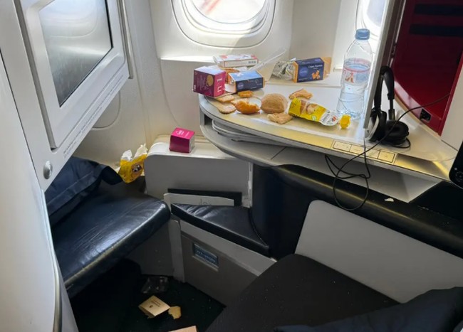 Empat foto diunggah lewat akun pribadi si pilot, Pierre-Yves André (@zepyaf). Ia menunjukkan betapa kacaunya tempat duduk mewah itu.