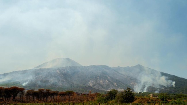 Kebakaran tersebut melanda area Taman Nasional Vesuvius di Campania, sebuah kawasan bersejarah di Italia selatan yang terkenal sebagai lokasi letusan dahsyat yang mengubur Kota Pompeii pada tahun 79 Masehi.