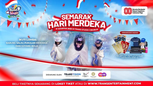 Tahun ini, Trans Studio Cibubur turut memeriahkan perayaan dengan menggelar acara spesial bertajuk "Semarak Hari Merdeka", menghadirkan beragam lomba unik yang bisa diikuti semua kalangan, mulai dari anak-anak, remaja, hingga orang dewasa.