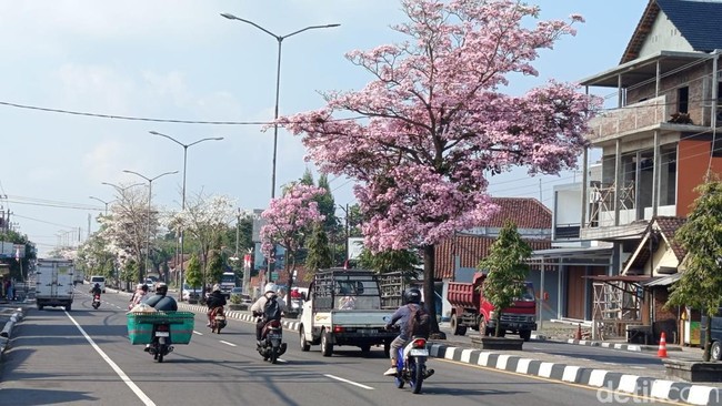 Pemandangan seperti di Jepang tersaji di Magelang. Cantiknya bunga Tabebuya yang bermekaran membuat Magelang serasa seperti di Negeri Sakura.