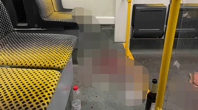 Darah mengucur dari wajahnya hingga menetes di lantai trem.