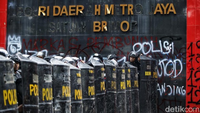 Aksi massa itu berlanjut di sejumlah titik Jakarta. Termasuk, di sekitar Polda Metro Jaya, Jakarta Selatan dan Markas Brimob di Kwitang, Jakarta Pusat.