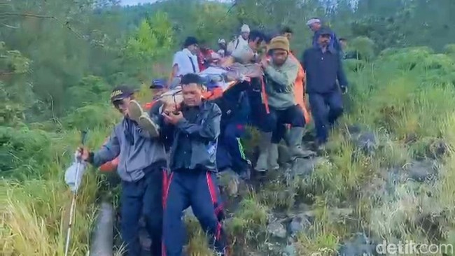 Melihat kondisi korban, salah satu anggota rombongan segera menghubungi pemandu untuk meminta bantuan. Beberapa pemandu pun segera bergerak menuju lokasi dengan peralatan seadanya untuk mengevakuasi korban.