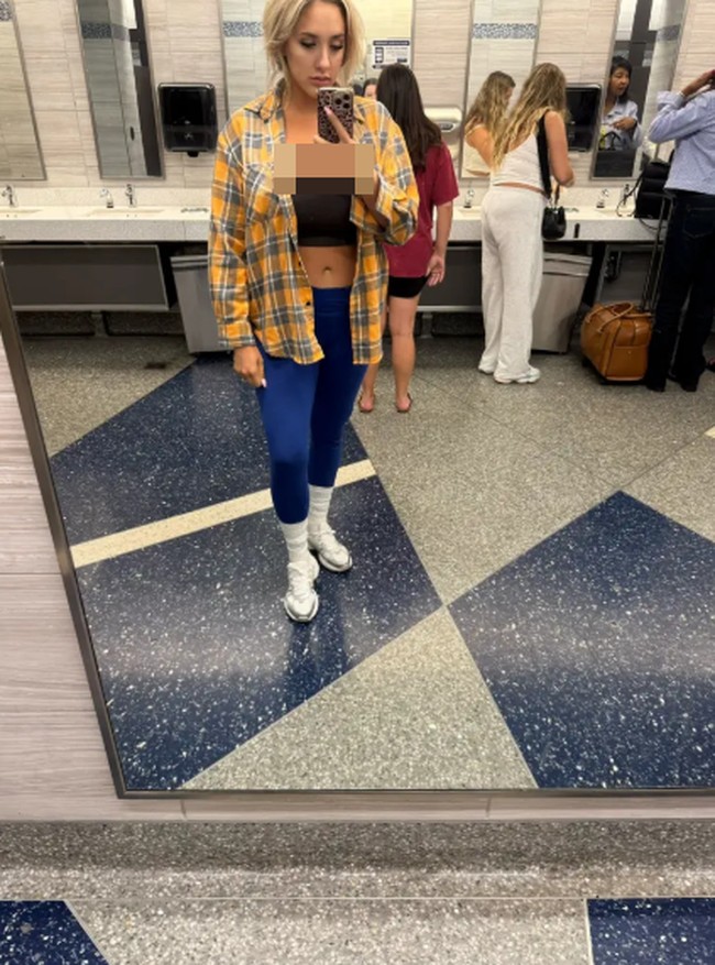 Mantan model Playboy Sarah Blake Cheek (34) ditegur pramugari saat bakal terbang dengan maskapai American Airlines pada Minggu (31/8/2025). Pakaiannya dinilai terlalu seksi.