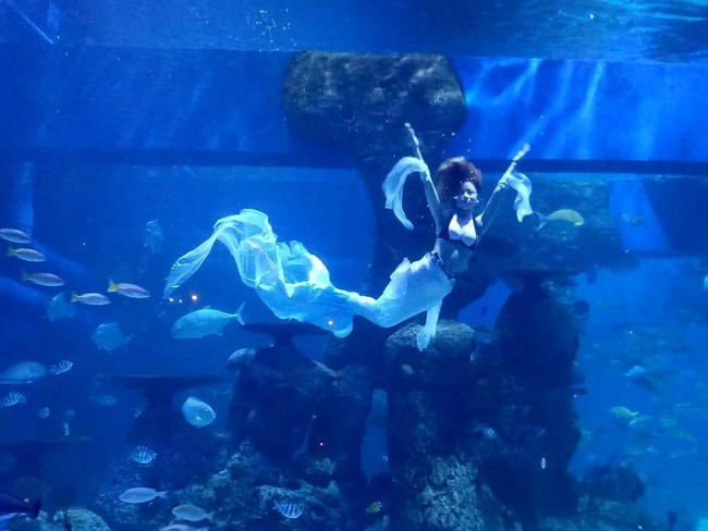 "Jadi mermaid ini memang suatu yang baru ya dan sebenarnya sangat susah dilakukan karena basic-nya adalah free diving tapi waktunya terbatas tapi kamu harus perform juga. Jadi harus cantik dalam air, enggak pakai mask, enggak pakai perlengkapan gitu kan. Namun kita harus bisa menampilkan suatu performance dalam waktu yang terbatas di dalam air," jelasnya.