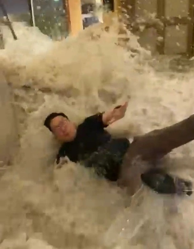 Sebuah video viral, di mana seorang tamu hotel jatuh saat luapan air masuk ke lobi setelah menghancurkan pintu kaca. Staf hotel berusaha keras untuk mengimbau tamu untuk meninggalkan area tersebut. Ketinggian air mencapai lutut orang dewasa.