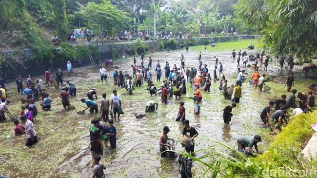 "Kedalaman air sekitar 3 meter, tapi kita buka tetek bendung sehingga air surut sebelum acara. Setelah ini nanti dikuras dibersihkan, diisi air dan ikan lagi untuk masyarakat," jelas Ery.