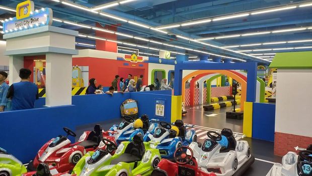 Salah satu pengalaman yang dikenalkan adalah konsep first driving lesson dalam bentuk permainan berkendara ramah anak di area tematik.