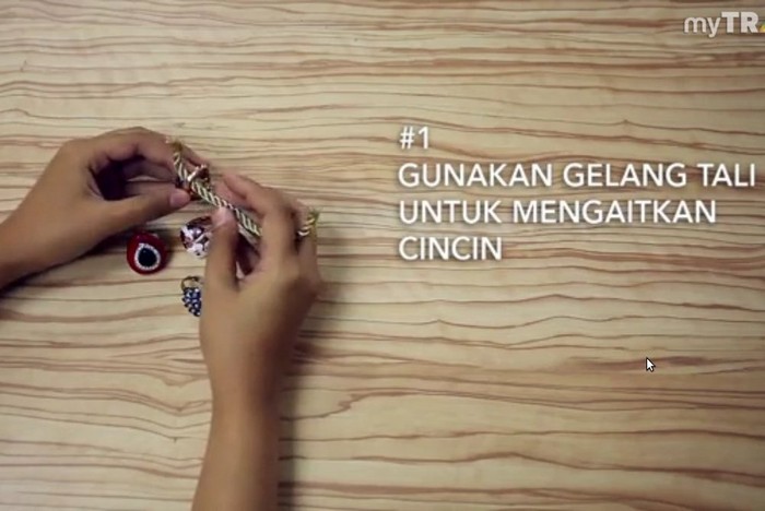 1. Gunakan gelang tali untuk mengaitkan cincin